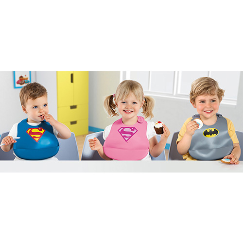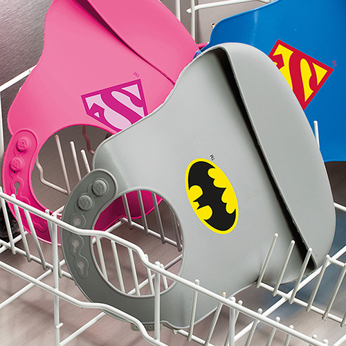 BATMAN SILICONE BIB is a fantastic bib that of the league of justice that will make your baby feel a true superhero.