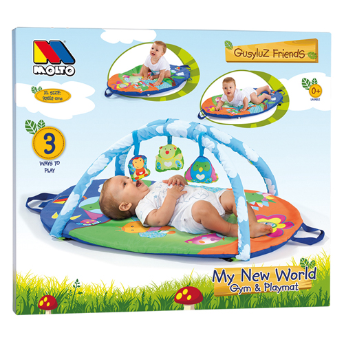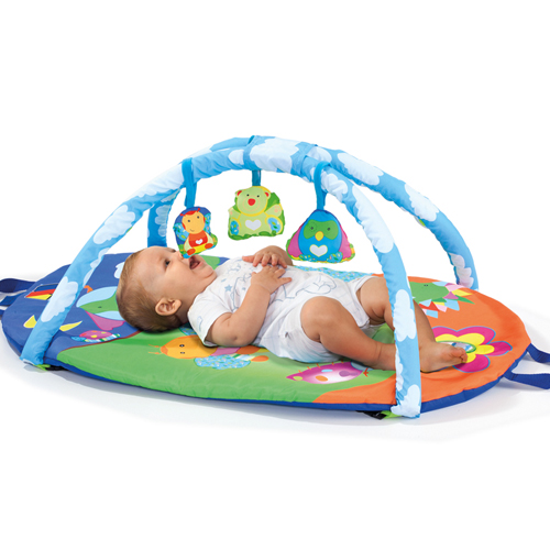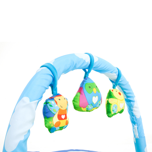 Playmat with archs and 3 detachabel toys: bee, owl, bear and a peek-a-boo mirror.