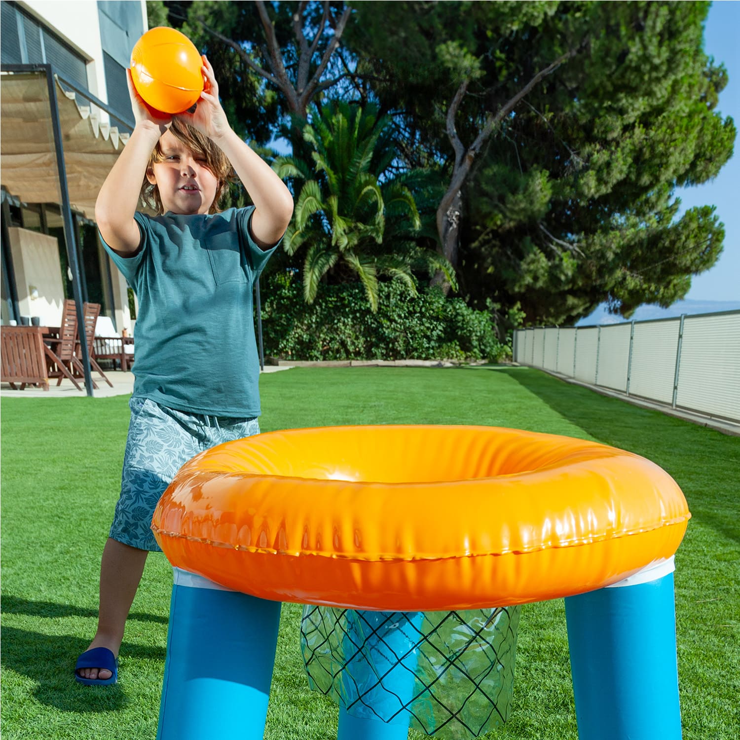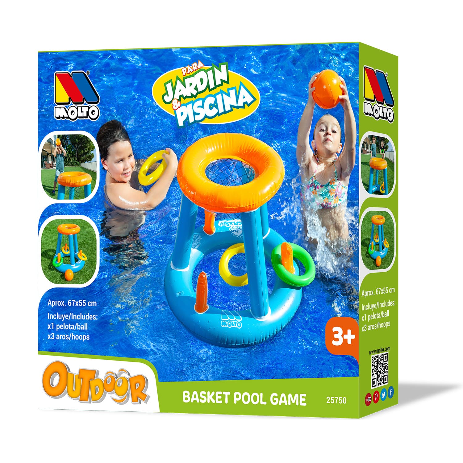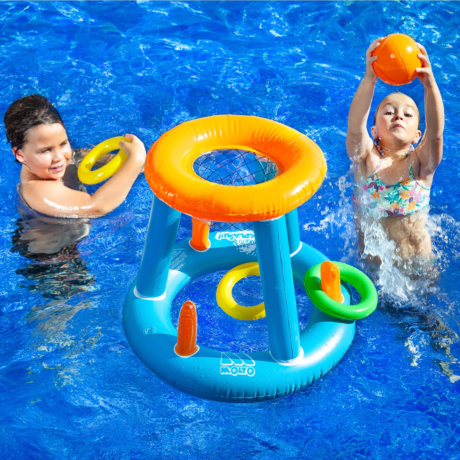 Guaranteed fun in and out of the water! The Inflatable Basketball Game for pool and garden is the perfect inflatable toy for active play in the pool or backyard. With a durable yet lightweight design, it includes 1 ball and 3 colorful hoops to help improve coordination and motor skills in young children. Ideal for kids aged 3 and up, this set turns any space into a fun and active play zone—perfect for parties or hot summer days.