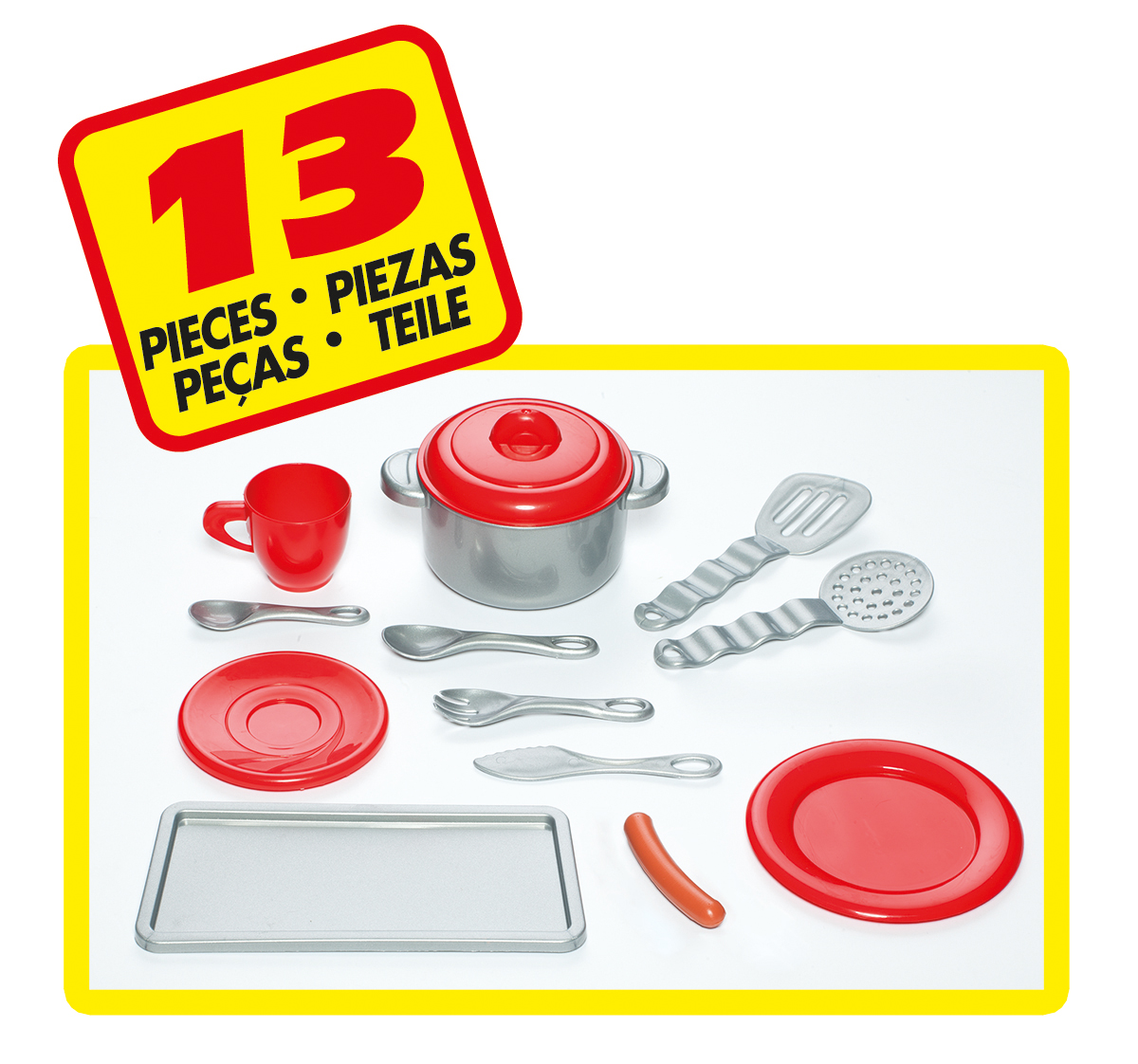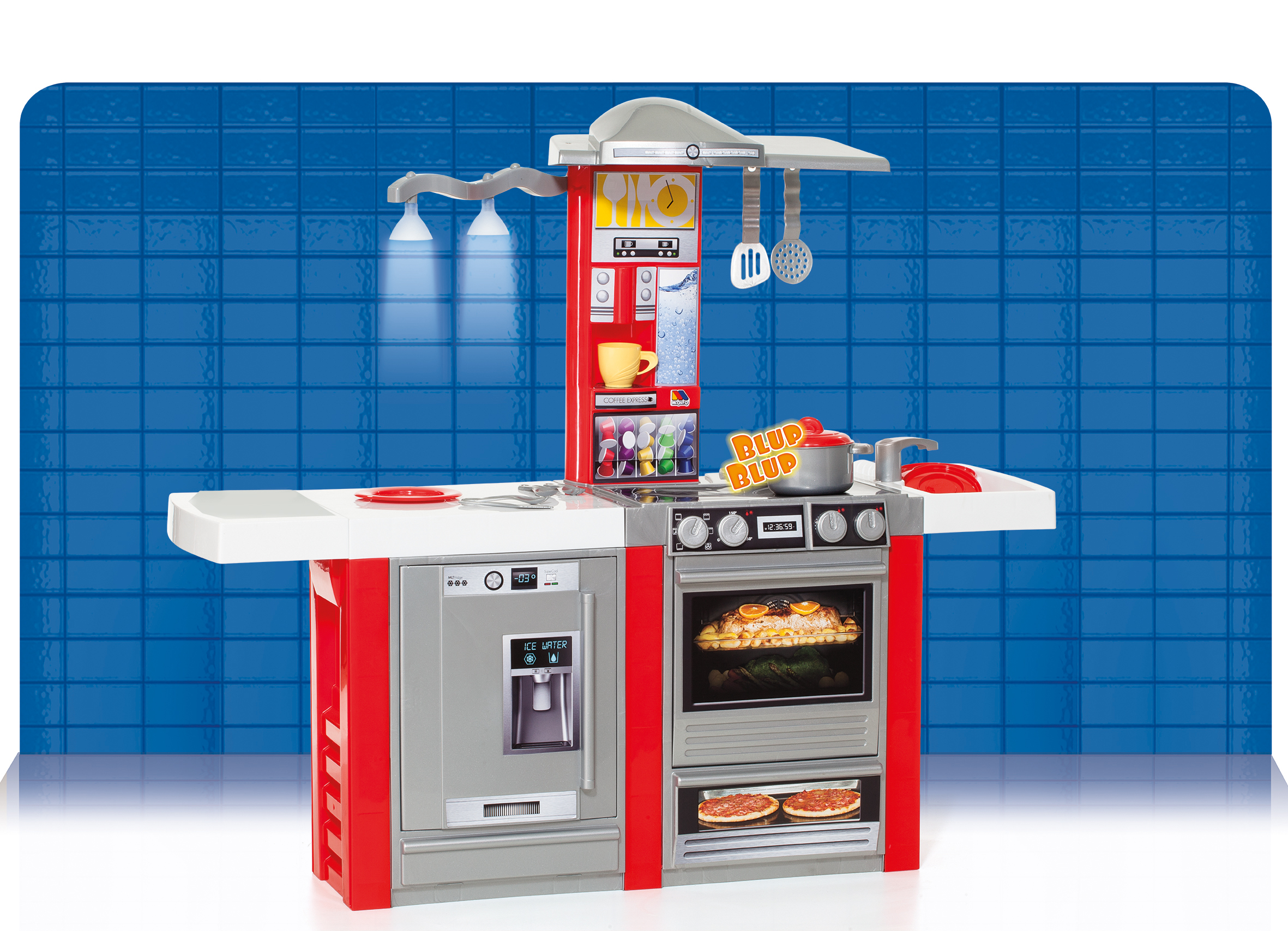 A large fully equipped with oven, cooking plate, hood, sink kitchen. refrigerator, cooking real sound and 13 accessories included.