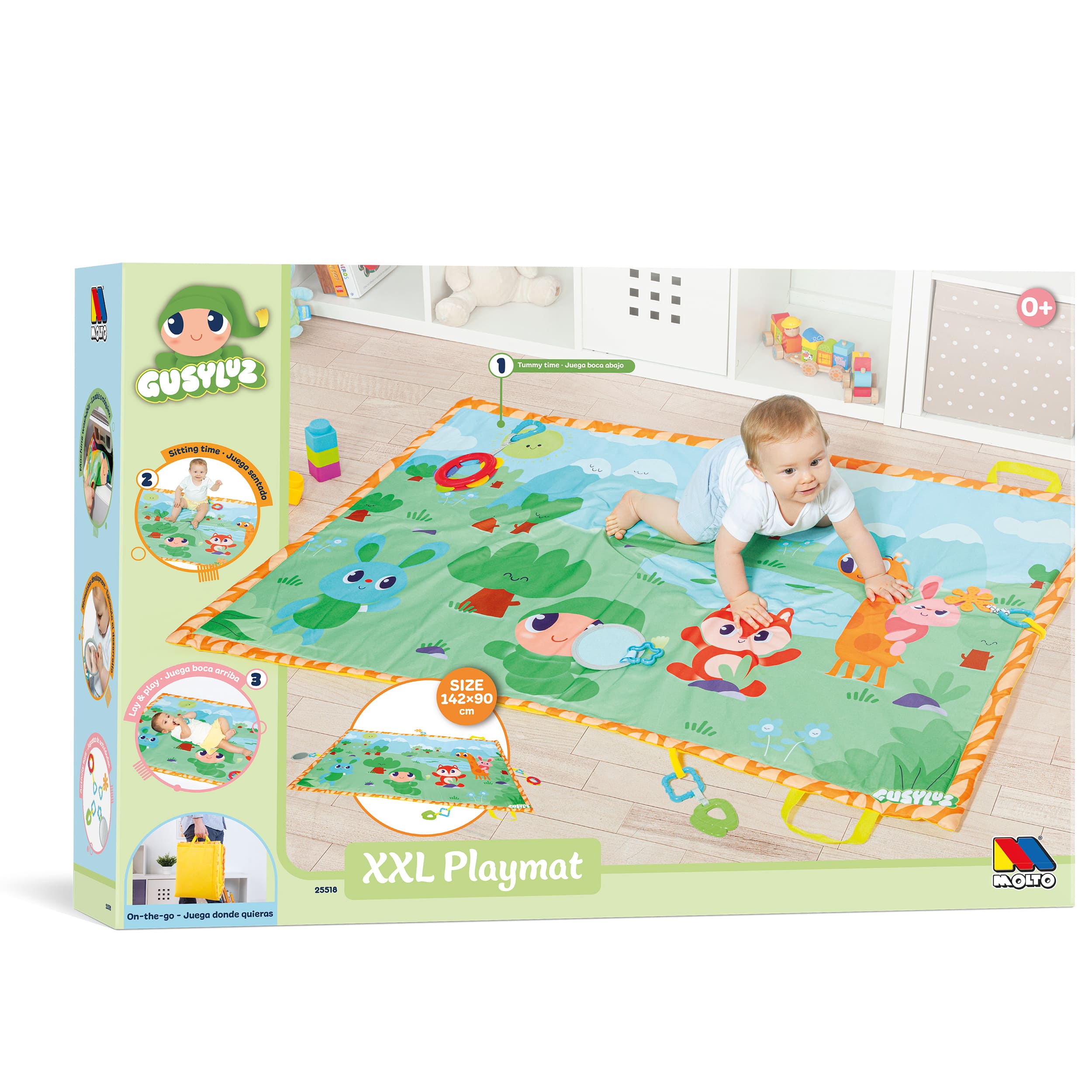La alfombra de juegos XXL de Gusy Luz es el espacio perfecto para que tu bebé se divierta y se desarrolle con total libertad. Con unas generosas dimensiones de 140 x 90 cm, incluye 4 juguetes de actividades, uno de ellos musical, que estimulan los sentidos y fomentan el juego activo. Su diseño colorido con personajes entrañables invita a la exploración y al movimiento. Ideal para bebés desde los 0 meses, esta alfombra ofrece comodidad, seguridad y estímulo en cada rincón.