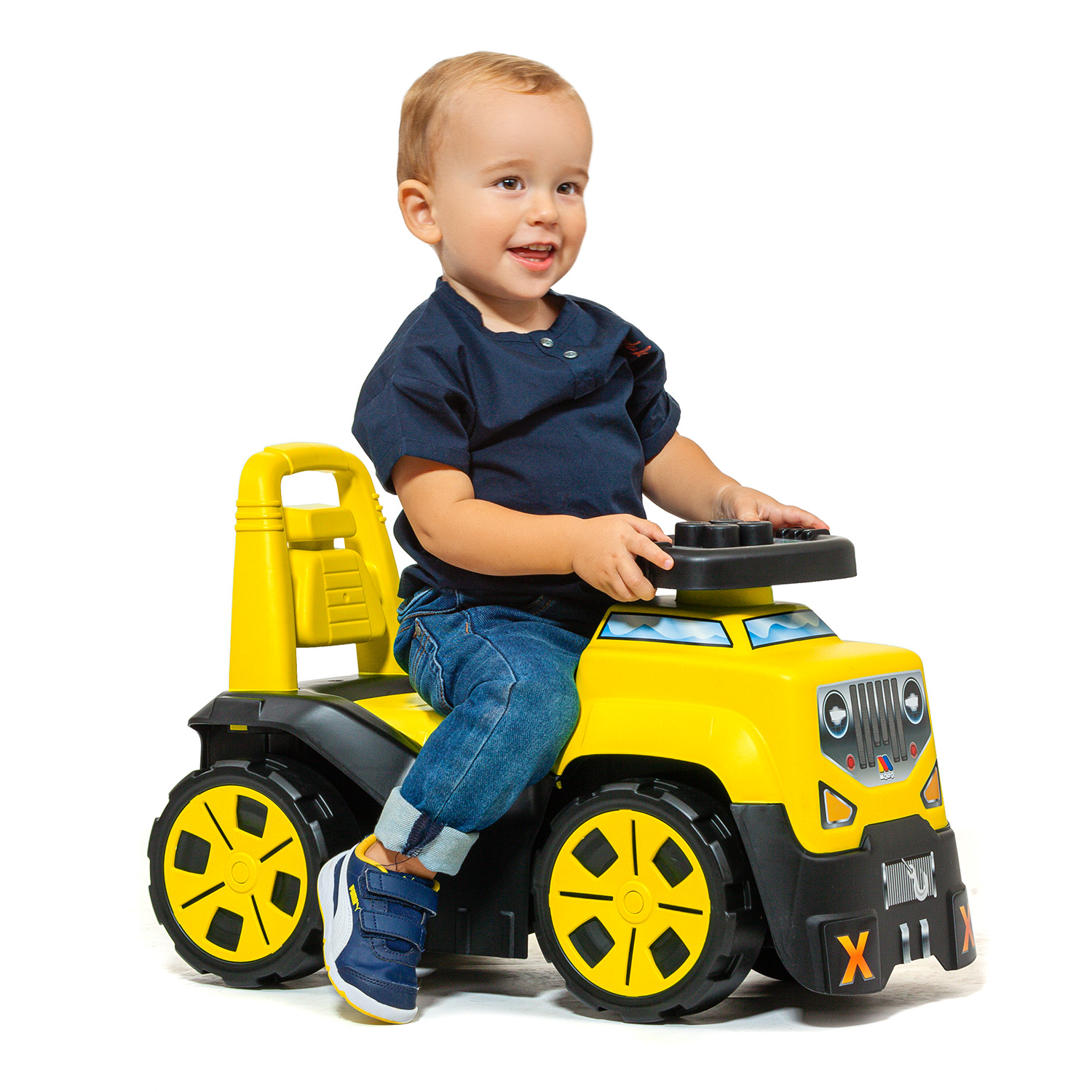 El nuevo correpasillos Amarillo Suv 3 en 1 de Moltoshop con forma de todoterreno ofrece diversión a raudales. Los más peques de la casa lo podrán utilizar como quieran gracias a sus 3 modos de juego.