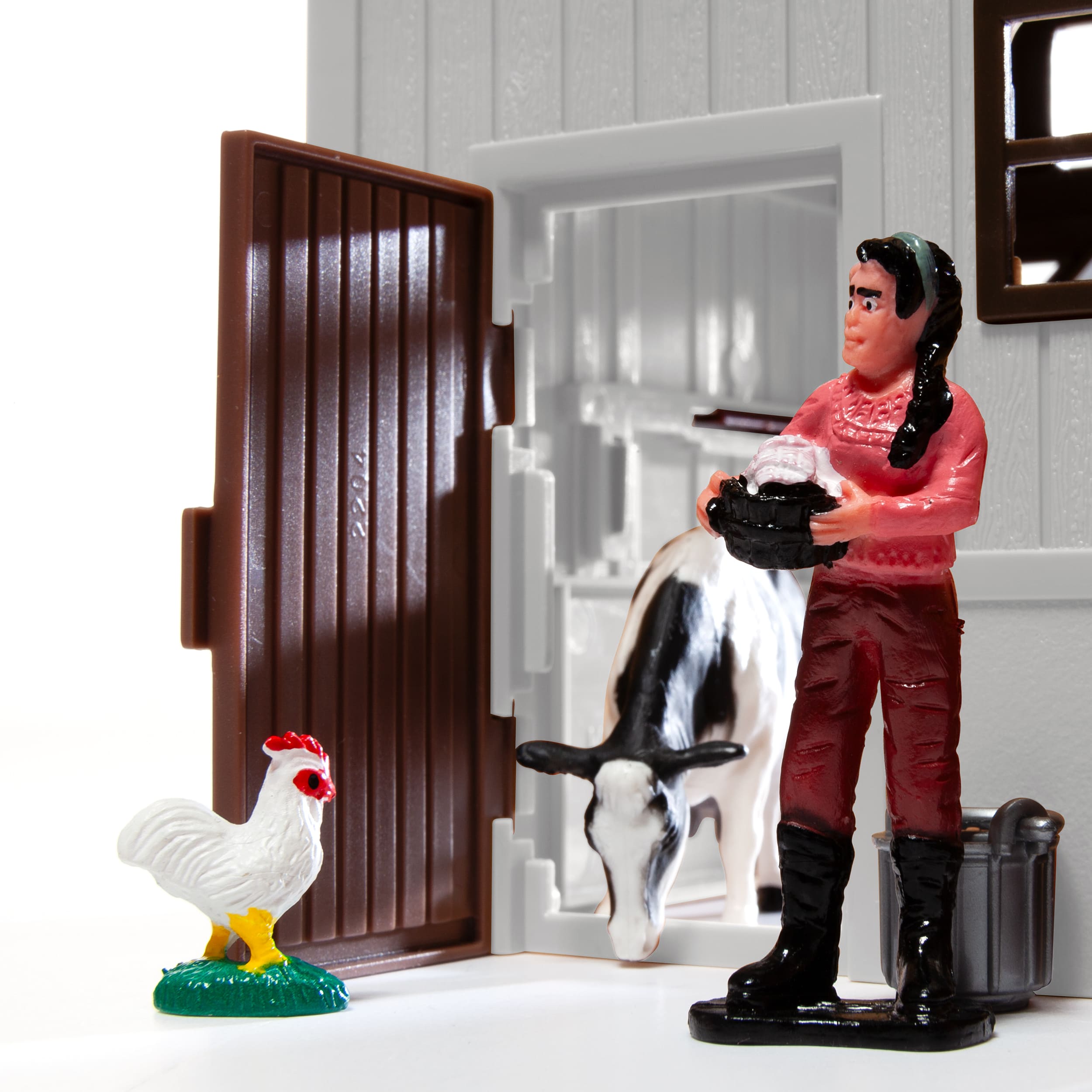 ✔ 10 accesorios: granjero, vaca, gallinas, pollitos, cubos, árbol y más