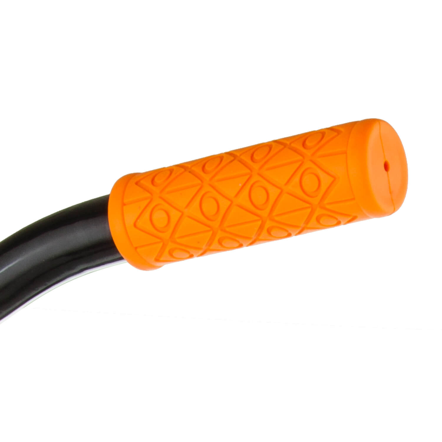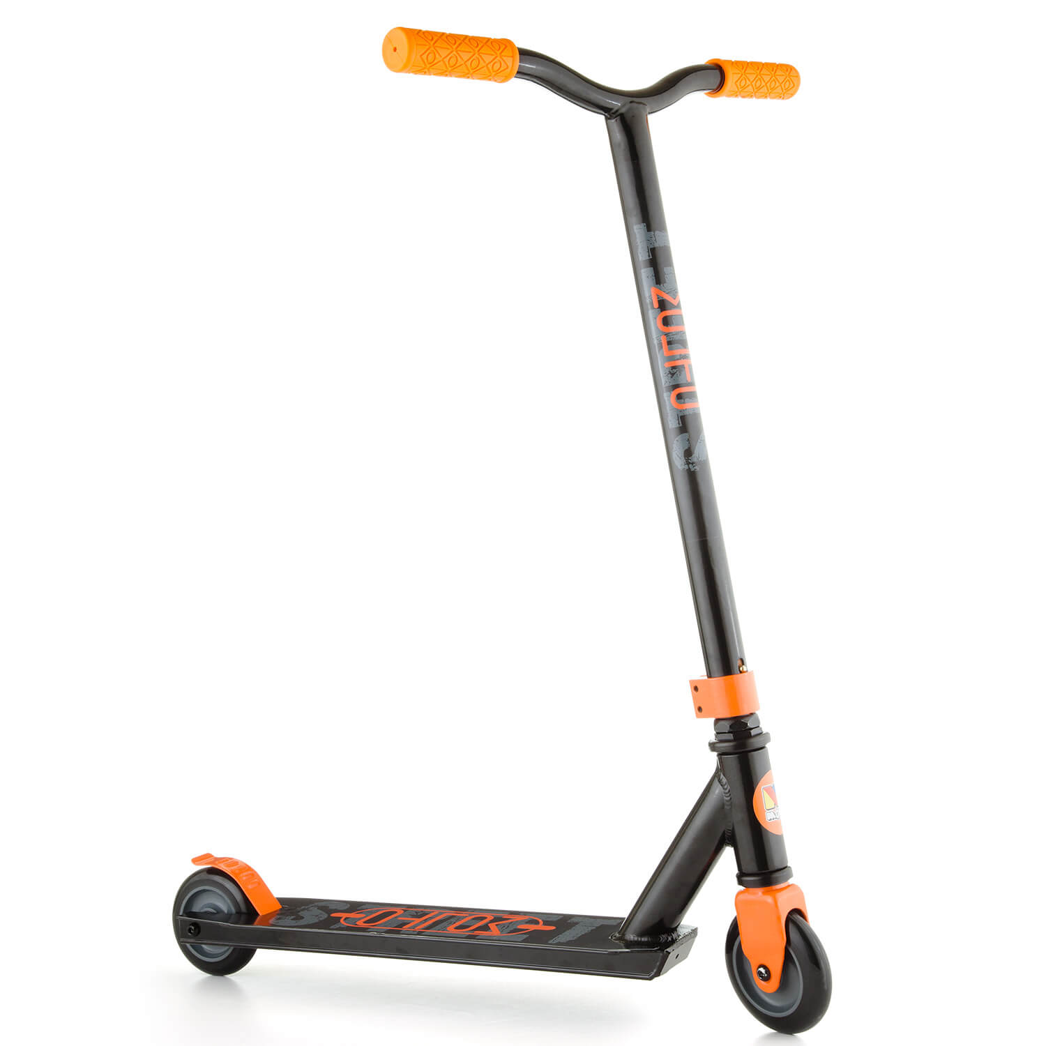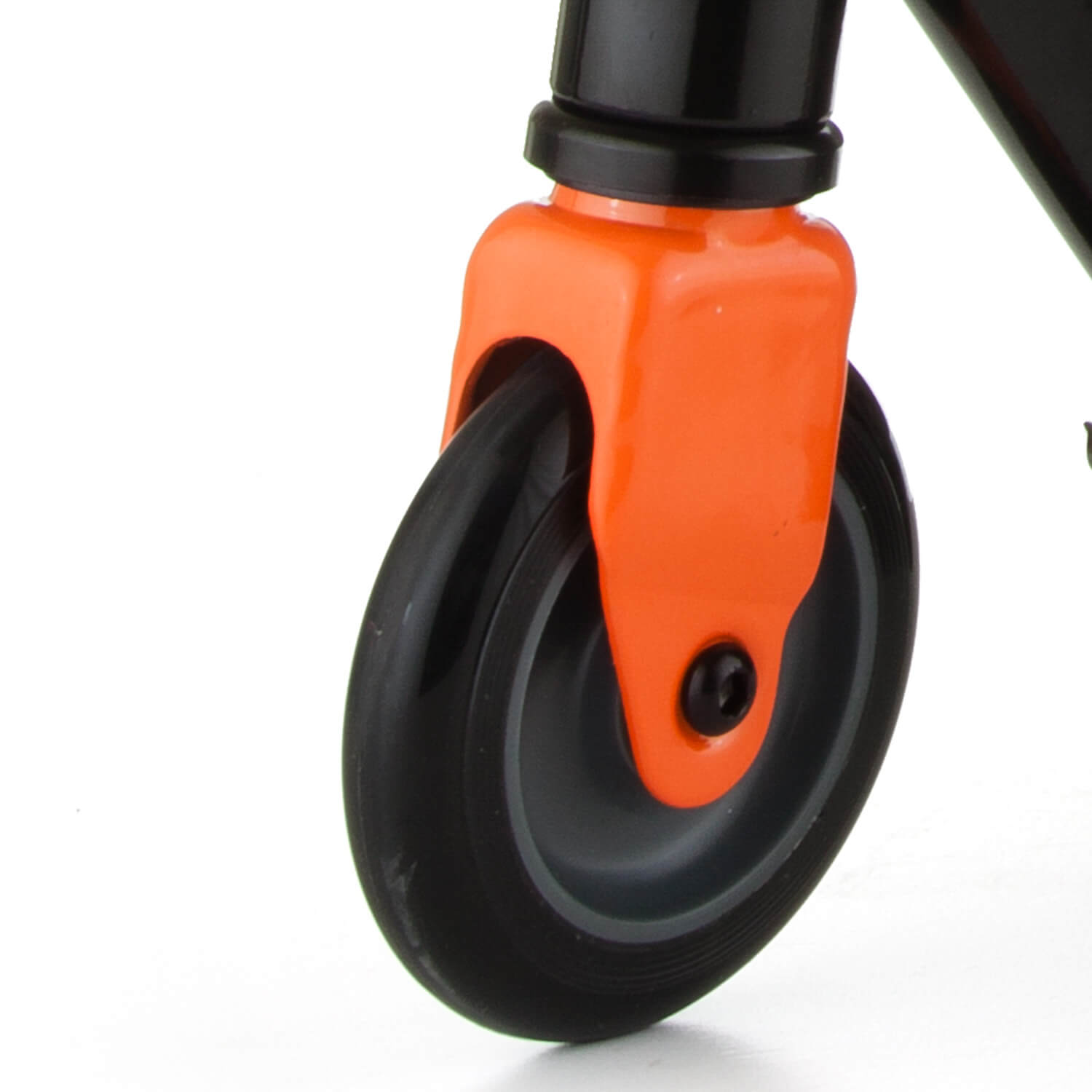 Patinete para niños y niñas naranja freestyle, con manillar ergonómico con giro 360º, construcción ultra-resistente, frenado seguro, y suelo antideslizante. Patinete preparado para tener la libertad de dar saltos, acrobacias y trucos. Este patinete freestyle es apto para niños de 1,10m a 1,50m.
